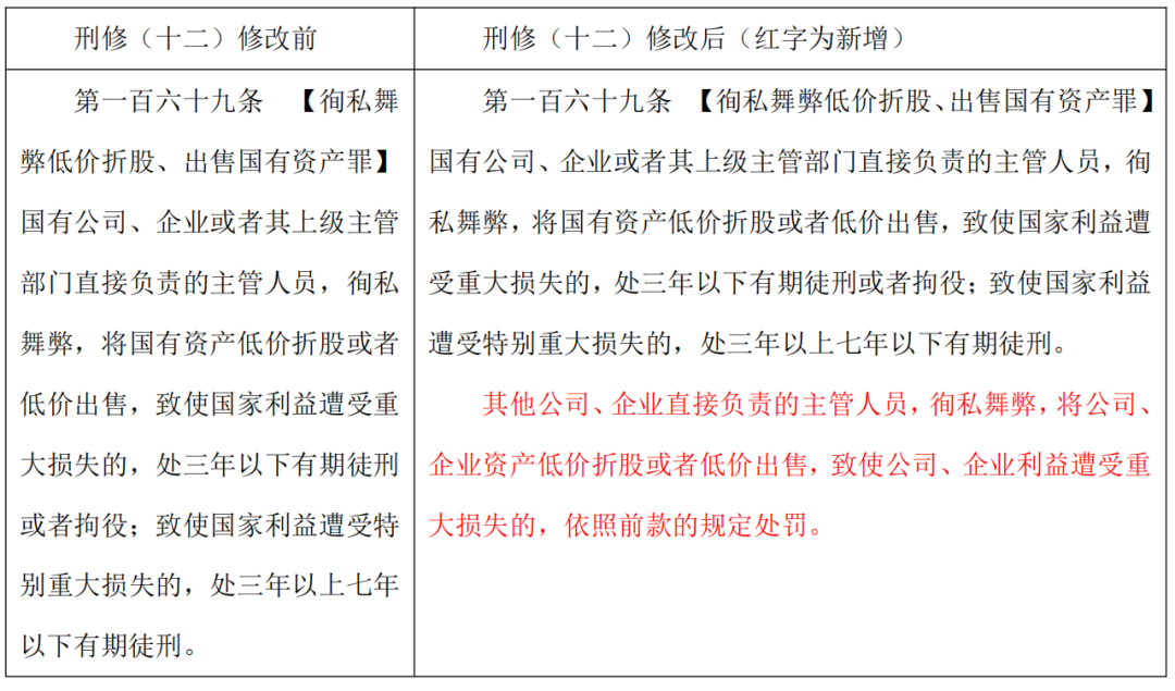《刑法修正案(十二)》中“徇私舞弊低价折股、出售国有资产罪”将构罪主体范围由国有企业主管人员扩大到民营企业的主管人员,范围的调整是整治民营企业内部频发舞弊问题的迫切需要,也标志着对民营企业资产与国有资产的平等性法律保护。